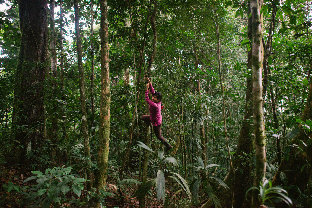 A family fishes in the ‘quebrada’ Ayampis, one of the many tributaries of Rio Santiago. Wampis like to say that the forest is their supermarket. The rivers are key to daily life as a source of clean water and fish and there are no problems with food security in the region. Amazonian forests are nicknamed “the lungs of the planet” for their capacity for turning carbon dioxide into oxygen, mitigating climate change.