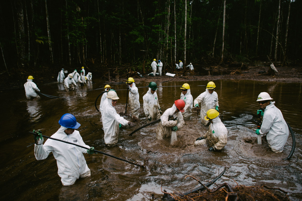 The latest spill, in 2016, affected 30km of tributaries before seeping into the main river Morona, and affecting communities living downstream. The cleanup operation, still ongoing, is involving almost 500 people, and will take at least a year. Every piece of soil and vegetation which has been in contact with the crude oil has to be destroyed.