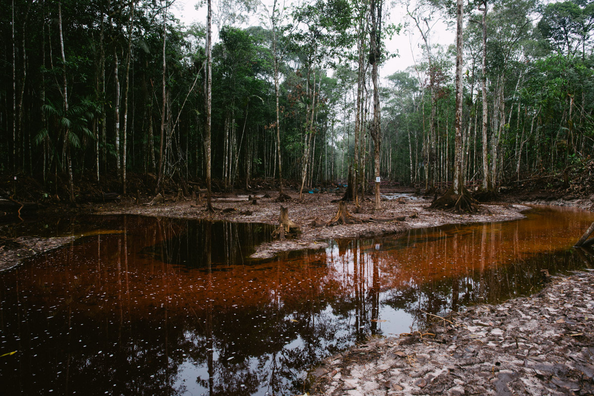 Forest damaged by the oil spill near Mayuriaga. Because of the multiple threats to their environment, Wampis were inspired to create the new government by the UN Declaration on the Rights of Indigenous Peoples, were driven by the multiple threats to their environment and aim to prevent its exploitation by the governments, companies and individuals.