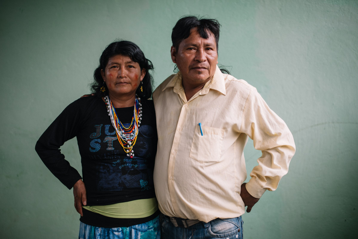Leaders and members of the Wampis Parliament: Elena (45) and Rebolio Garcia (52), Presidente of OSHDEM and Presidentesa des mujeres OSHDEM. Saphaja.