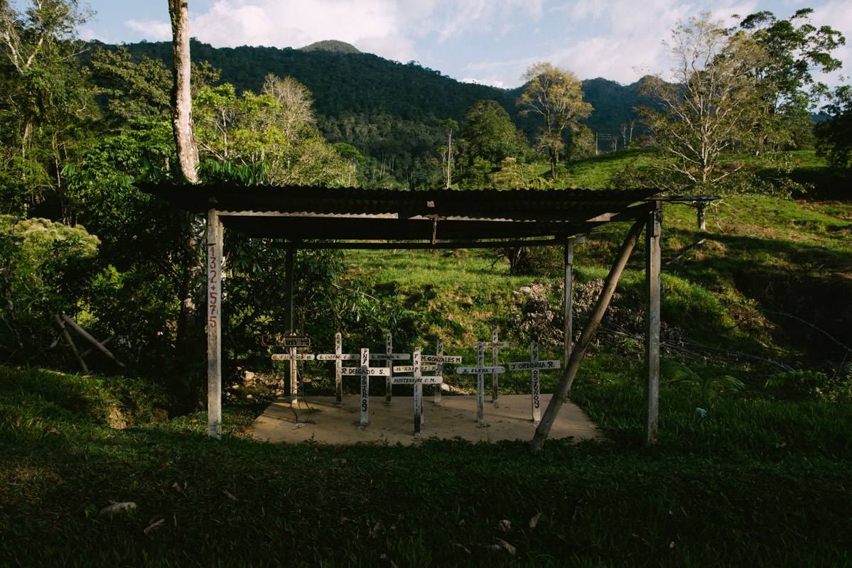 Crosses at the Pumping Station 6, on the North Peruvian Pipeline, to remember policemen killed during the events of 2009 in Bagua. Following a set of laws facilitating access to their lands by the extractive industries. Wampis and Awahun people marched to Bagua, blocking the main road. In the clashes that followed, at least 34 people – 24 policemen and at least 10 civilians – died.
