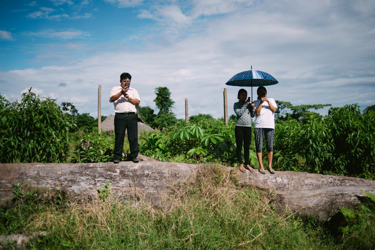 People searching for mobile connection in Soledad. After more than 50 community meetings and 15 general assemblies, in this remote village, on the 29th of November 2015, came to life the Autonomous Indigenous Government of the Wampis Nation. It was announced to the world through the first e-mail ever sent from Soledad.