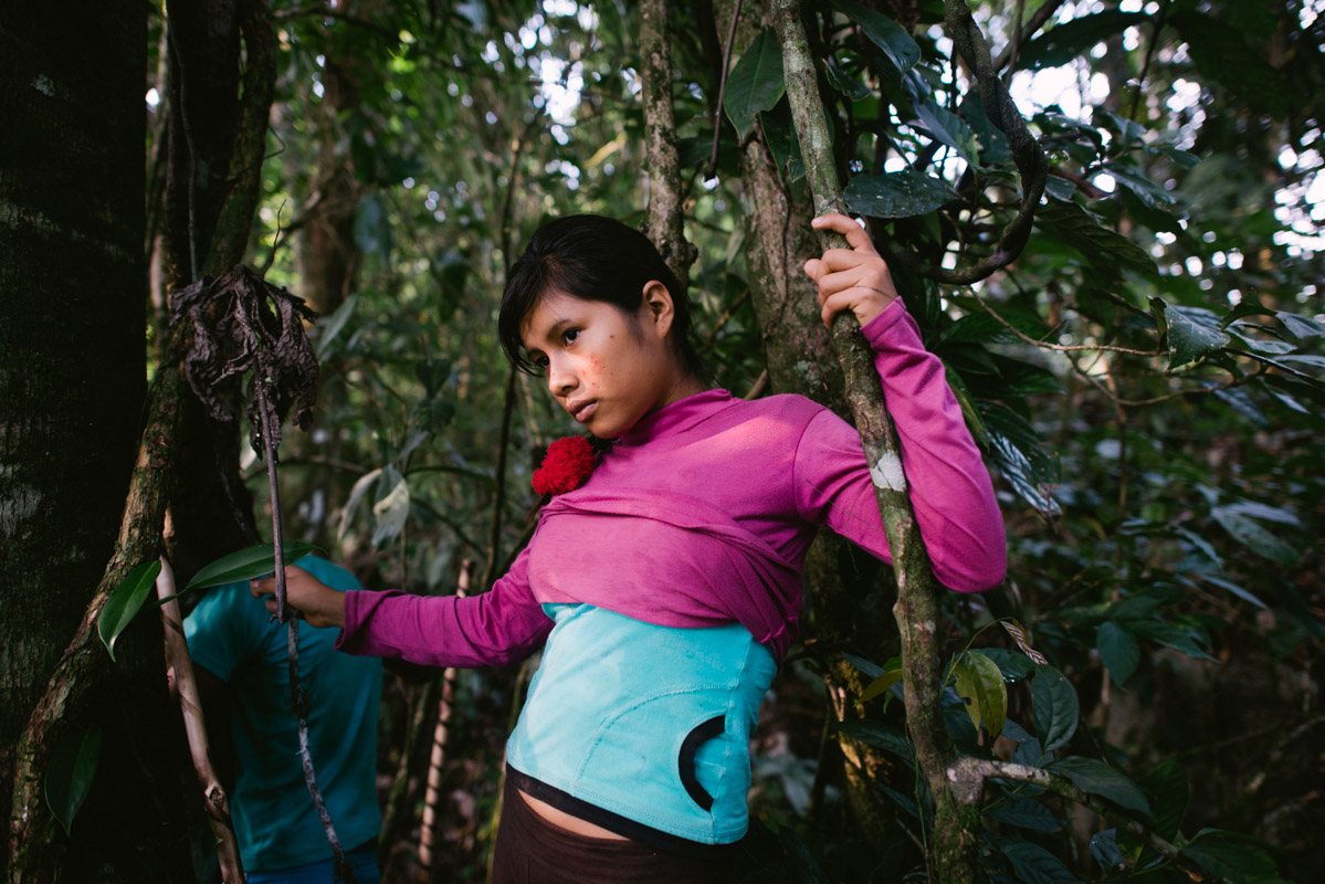 A girl looks at the sunrise during the ritual to become a visionary warrior. “Our ancestors noticed that the animals speak and even the earth moves and they asked where do these animals come from? What is the origin of the air we breathe, who looks after the trees? What is the origin of life?”, -tells Andres Noningo, member of the Council of the Elders of the Wampis nation.