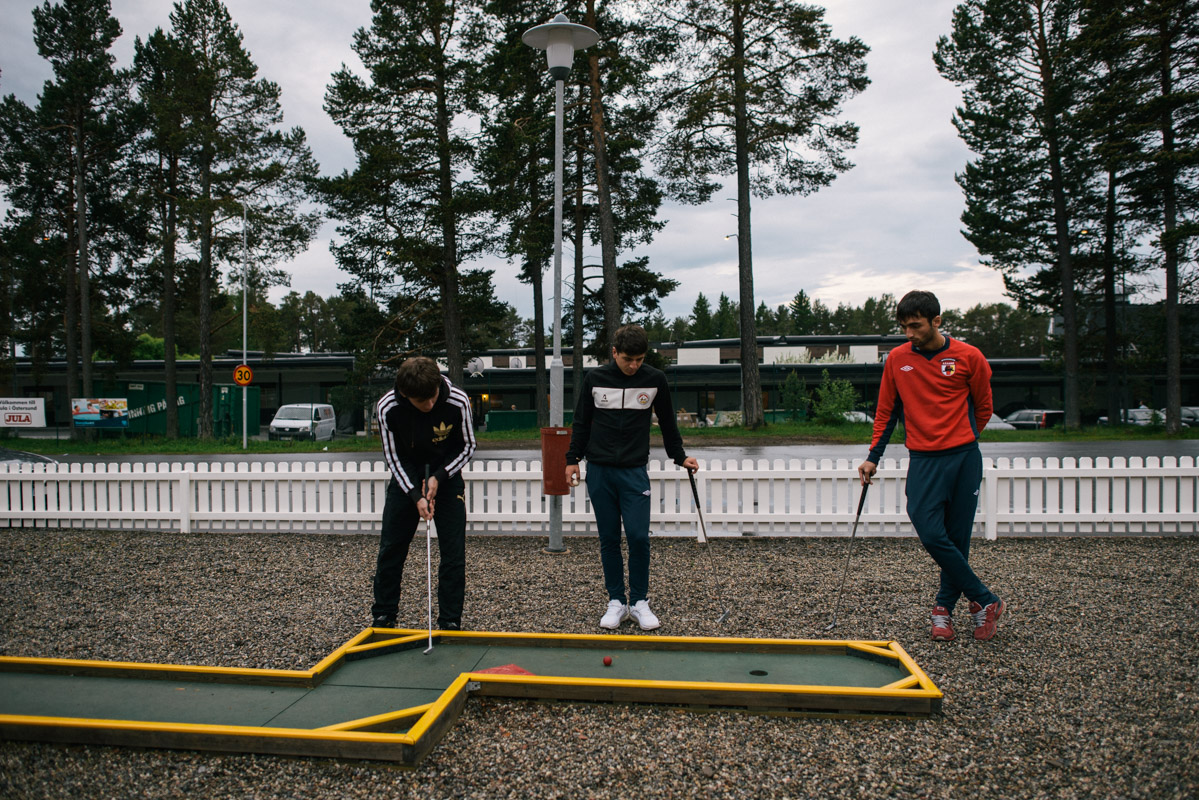 Players of South Ossetia during a break indulge in the national summer sport of Sweden: Mini-Golf. Although declared indipendence from Georgia in 1991 South Ossetia was the last born among the unrecognised nation of Southern Caucasus after the 2008 war between Russia and Georgia.